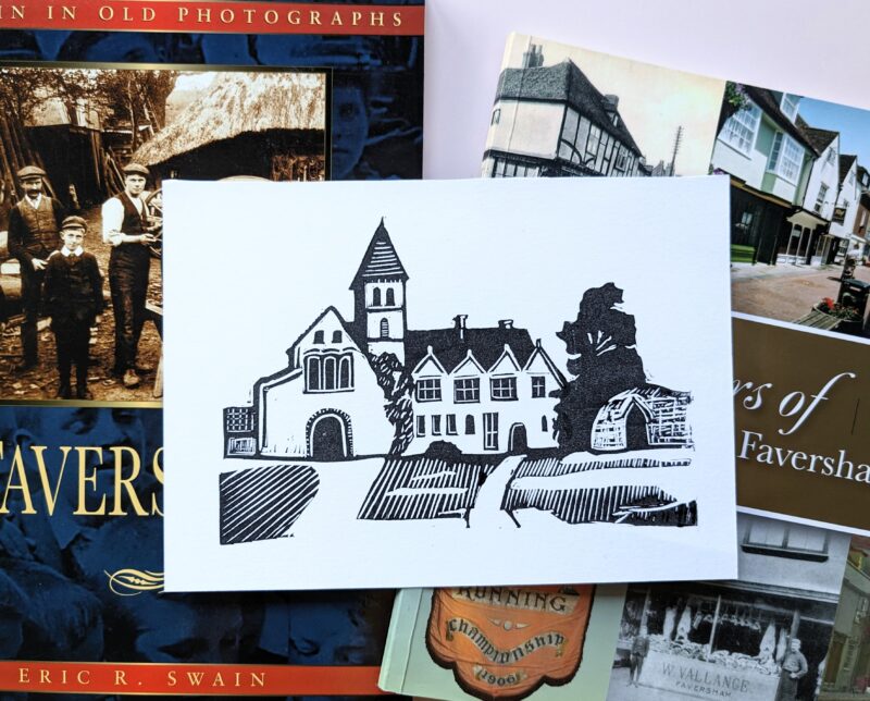 Lino print of Davington Priory by Tina Hagger